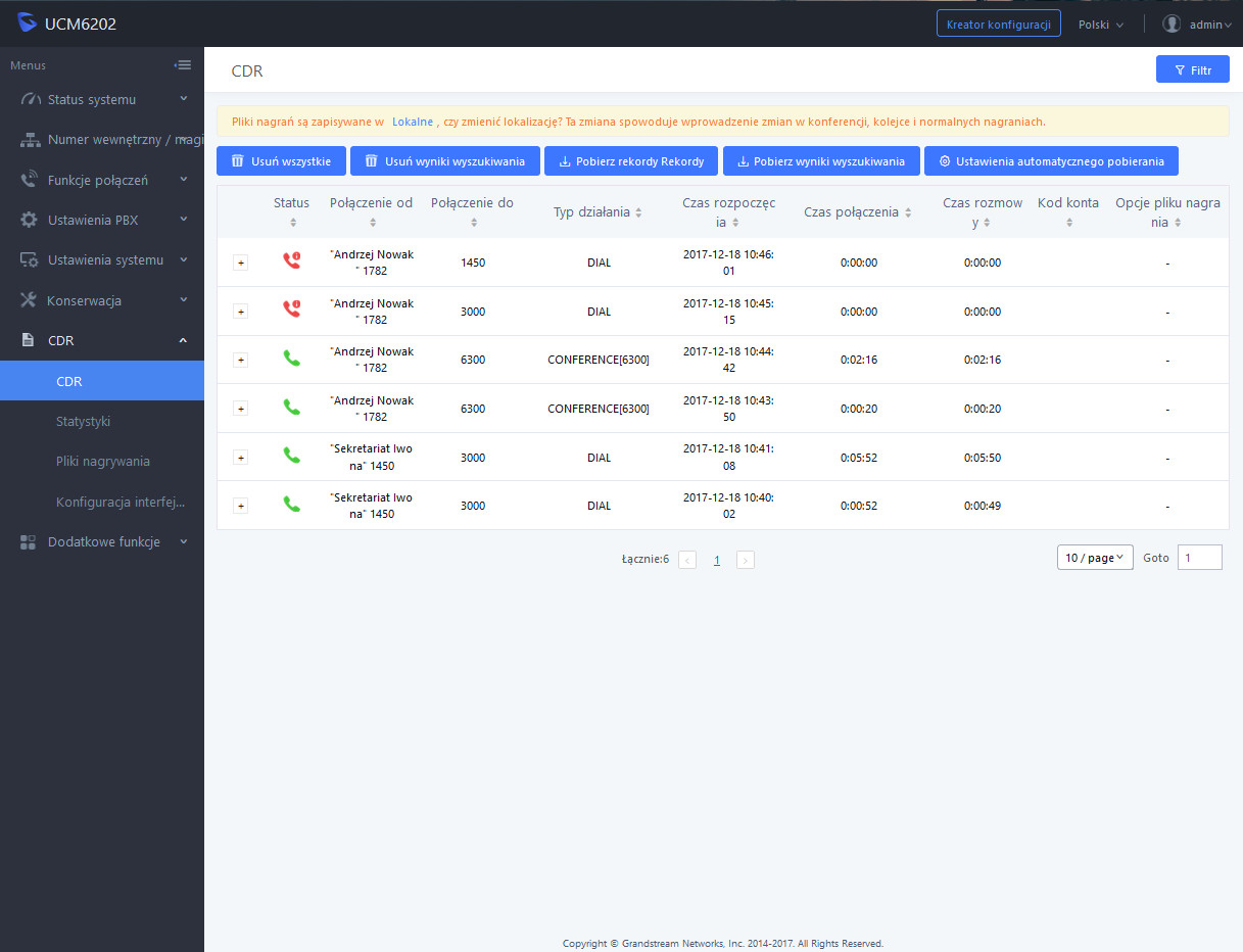 Wszystkie informacje o połączeniach, nagrania oraz inne cenne dane są trzymane lokalnie