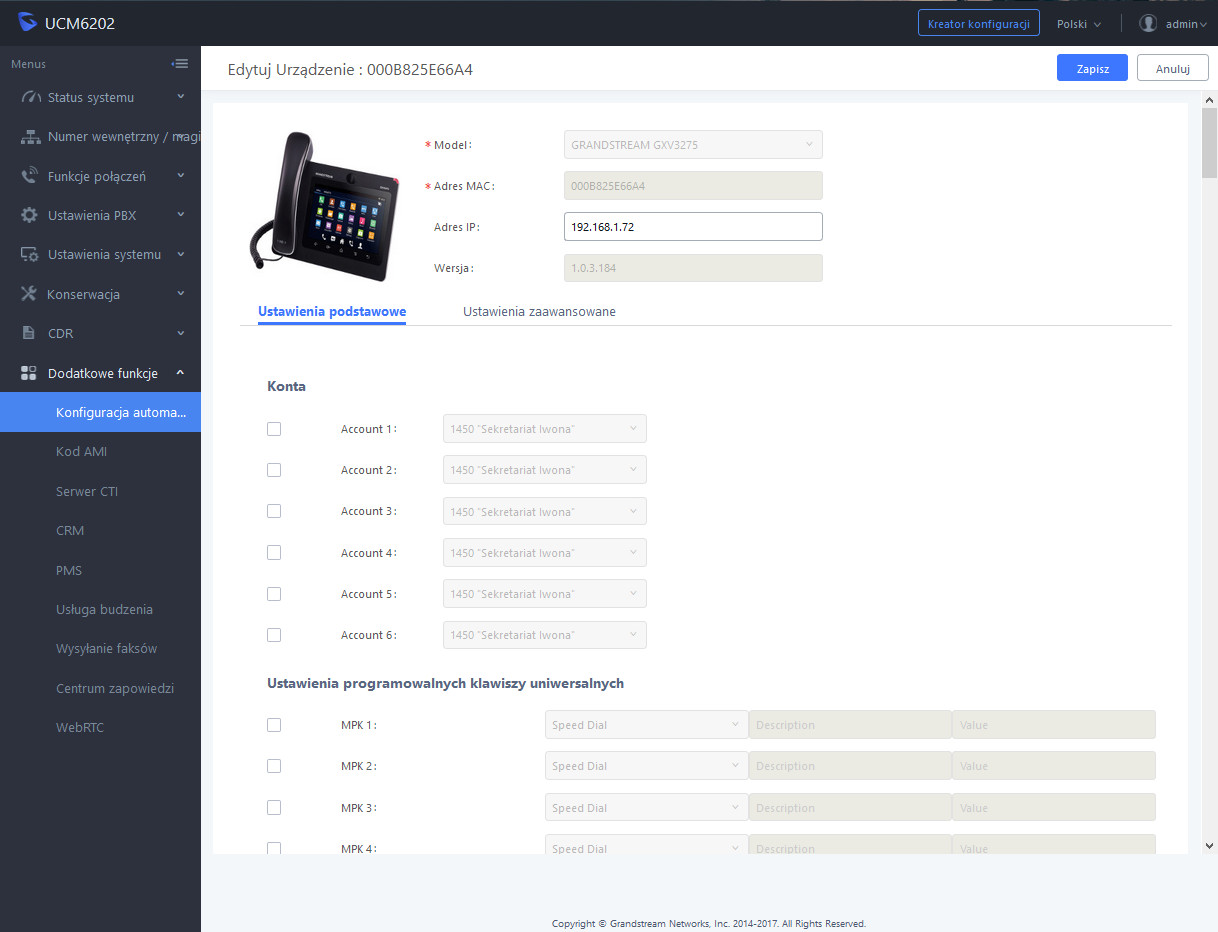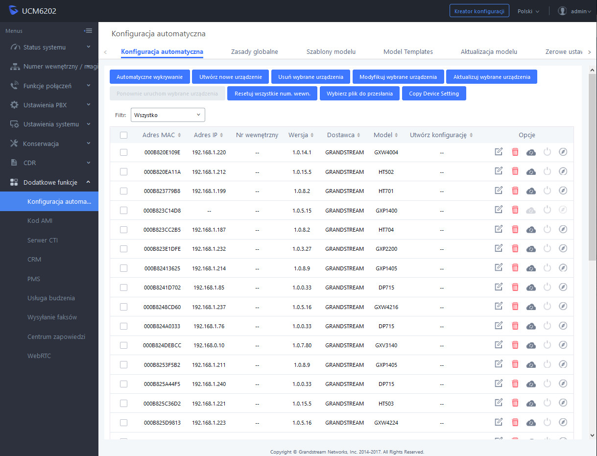 Zautomatyzuj konfigurację telefonów, bramek i innych urządzeń Grandstream bezposrednio z poziomu centrali za pomocą funkcji ZeroConfig