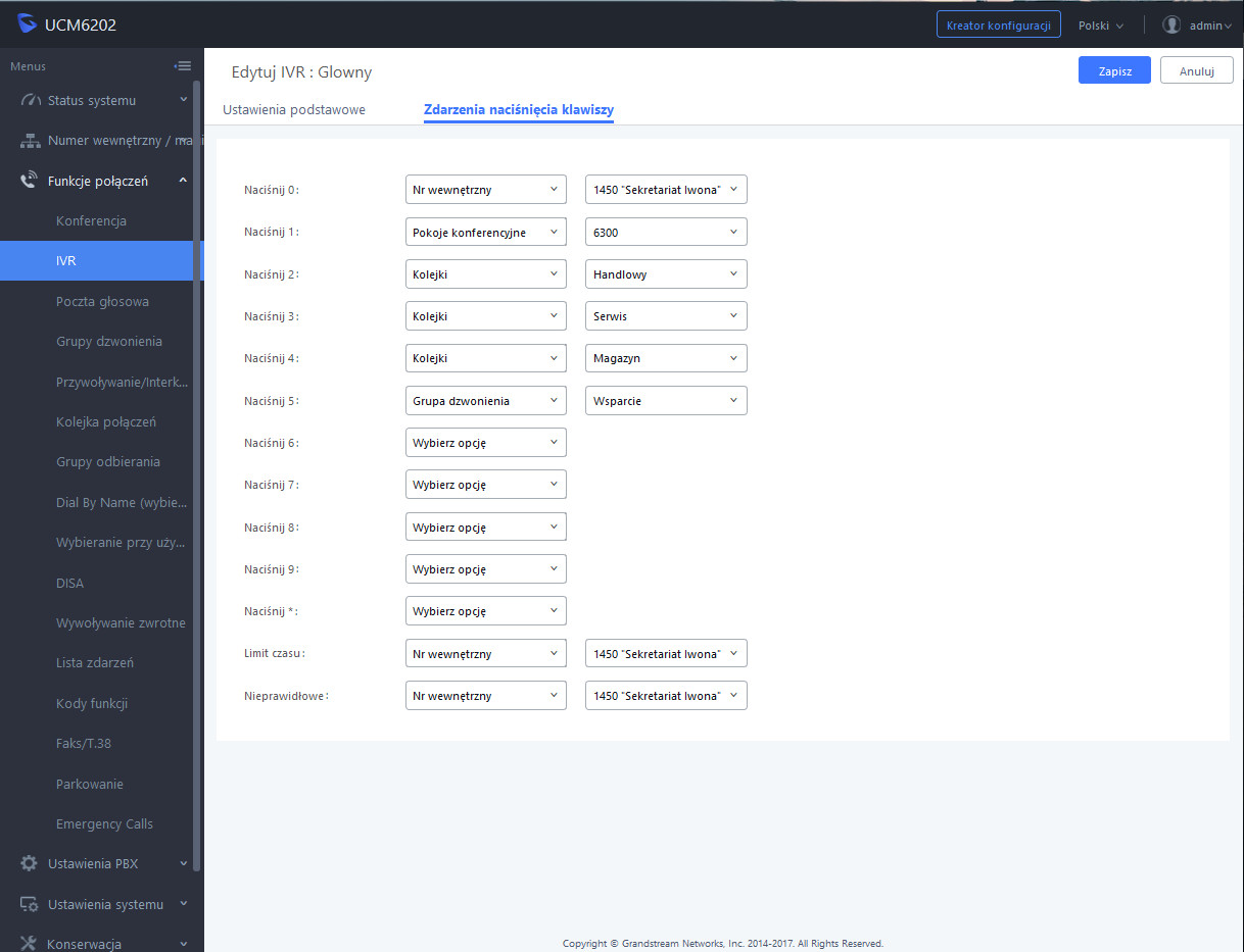 - Zaawansowany IVR (Interaktywna Obsługa Dzwoniącego)